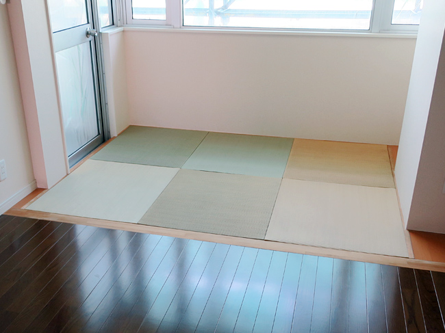 縁無し畳の畳床はそのまま活用し、表を新しいものに張り替えました。