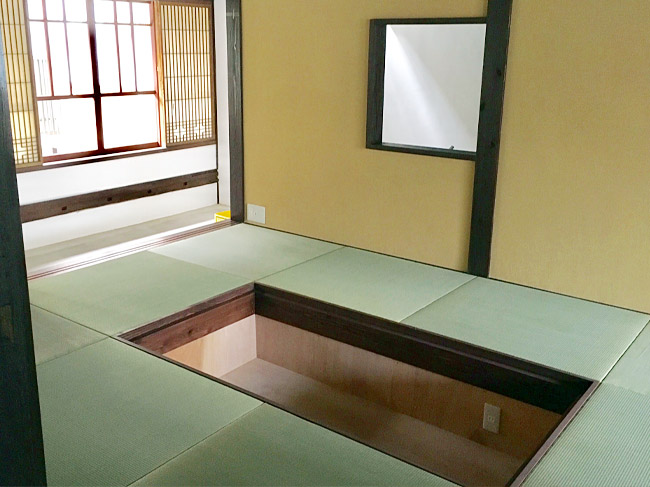 リノベーション中の古民家にヘリ無し畳を納めさせていただきました。