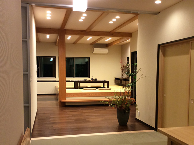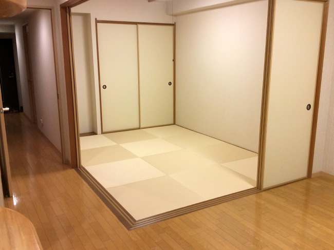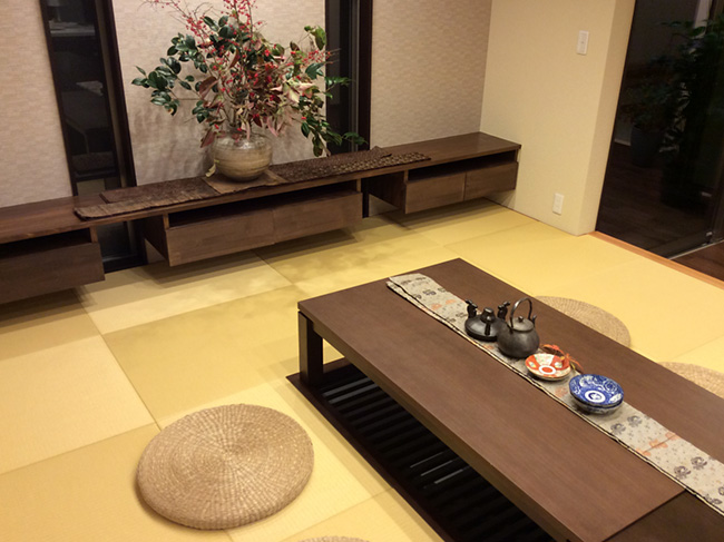 掘りごたつのあるお部屋に縁無し畳を納めさせていただきました。