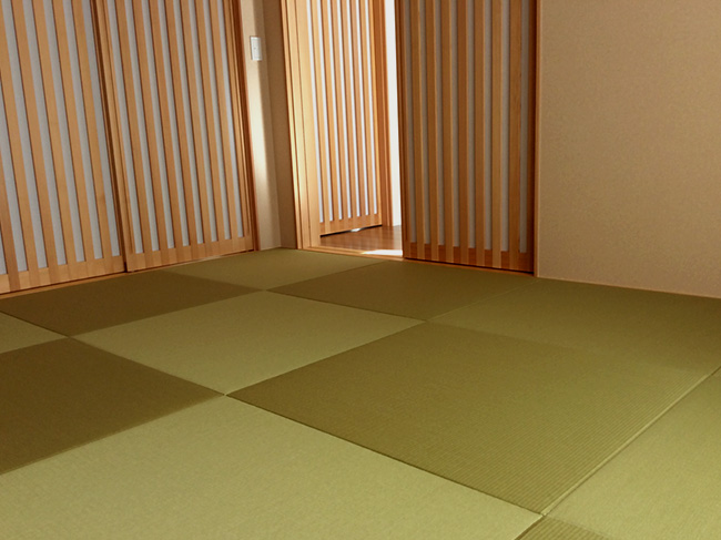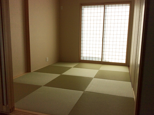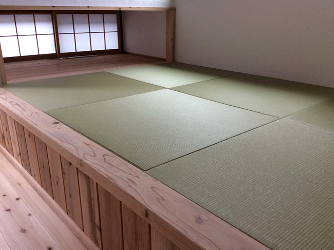 掘りごたつのあるお部屋に縁無し畳を納めさせていただきました。