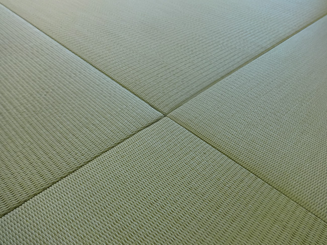 2色で織り込んである新作の縁無し畳です。上の写真では分かりにくくてゴメンナサイ。