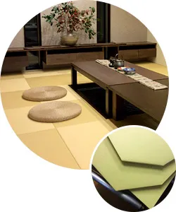 畳の縁が無いため圧迫感がなく、和室を開放的な空間に演出します。